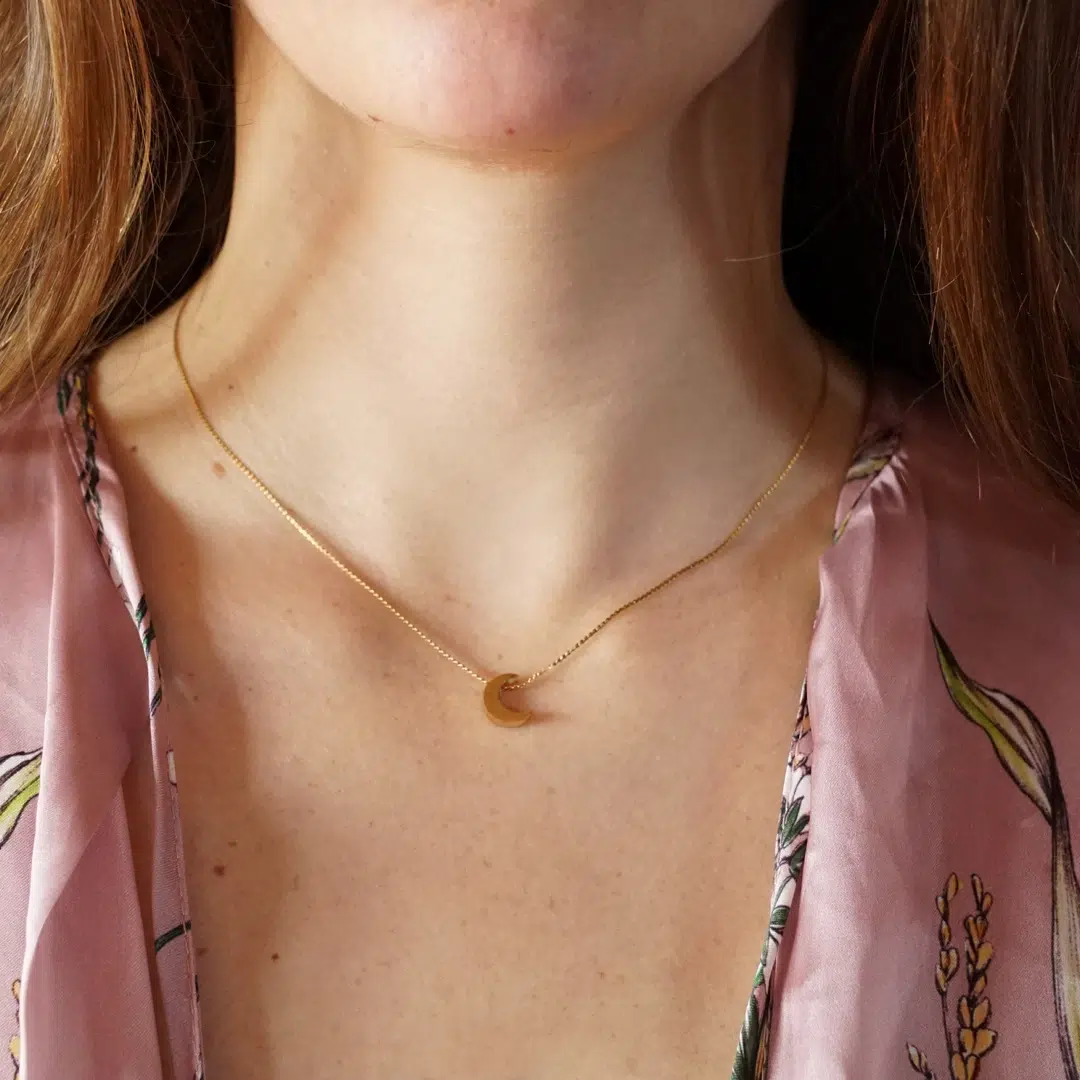 Collar Luna no es solo una joya, es una declaración de estilo que refleja la dualidad y el encanto de nuestro satélite natural. Su diseño único te permite personalizar tu look con facilidad; simplemente ajusta la dirección del colgante para revelar una luna creciente o decreciente, añadiendo una dimensión versátil a tu estilo. Esta característica distintiva convierte a Collar Luna en un accesorio dinámico que se adapta a diferentes ocasiones, desde eventos formales hasta reuniones informales.